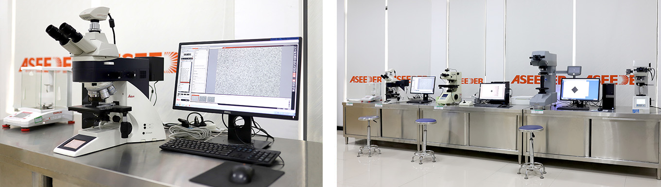 公司具備硬質合金,金屬材料的物理性能、化學成分的分析測試能力,包括金相分析,密度,硬度,抗彎強度,孔隙度和非化合碳,鈷磁,磁力,拉伸強度,沖擊功等。
